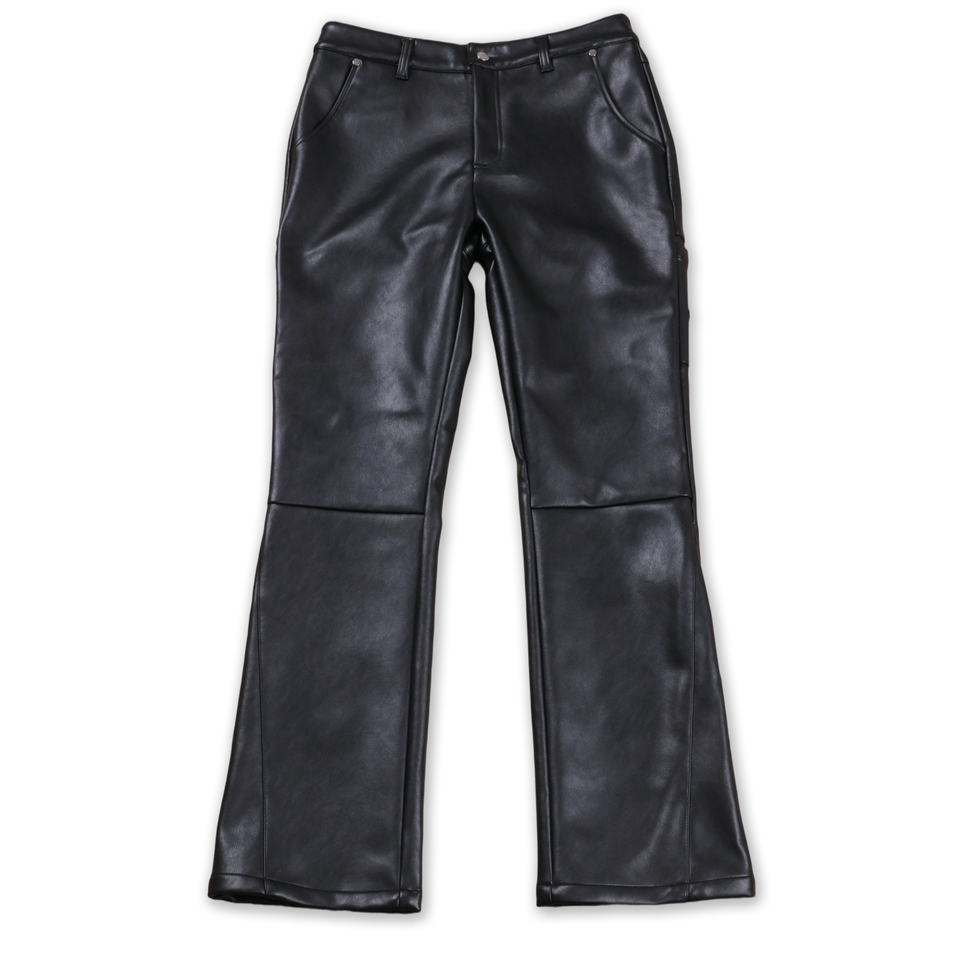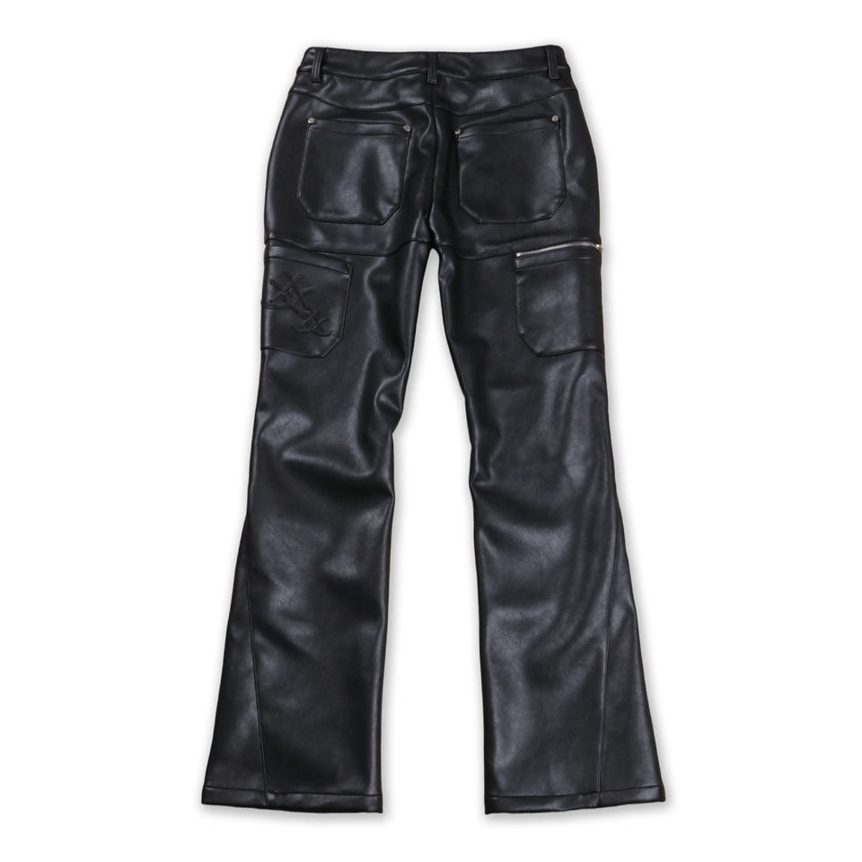 Top show all'ingrosso nero Pu Flared pantaloni personalizzati in pelle impilata pantaloni di tendenza in pelle da uomo pantaloni svasati