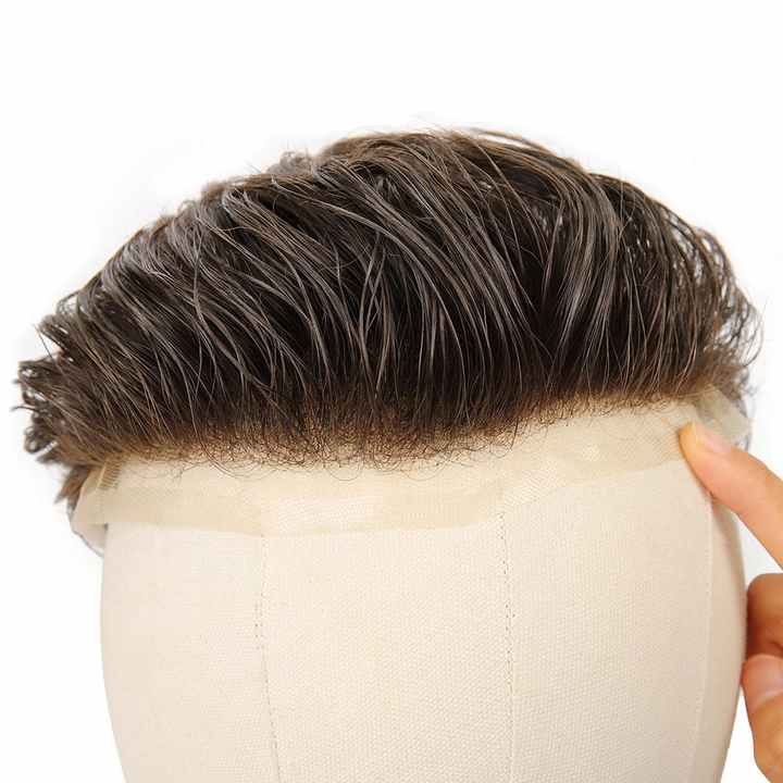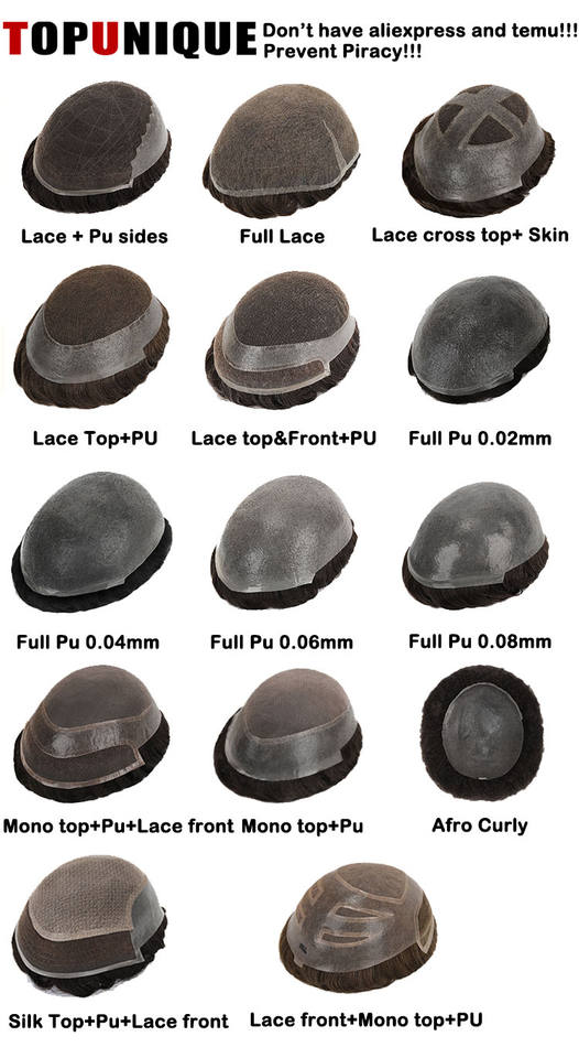 Parrucchino TOPUNIQUE per Uomo, Sistema di Base in Pizzo Completo Tedesco, Protesi Capillare Non Chirurgica per Uomini