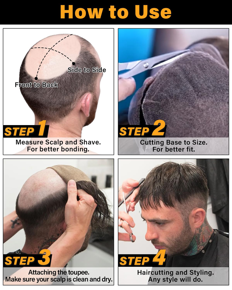 Utilizza capelli sintetici per percentuali di grigio pari al 50%, capelli umani per ≥60%.