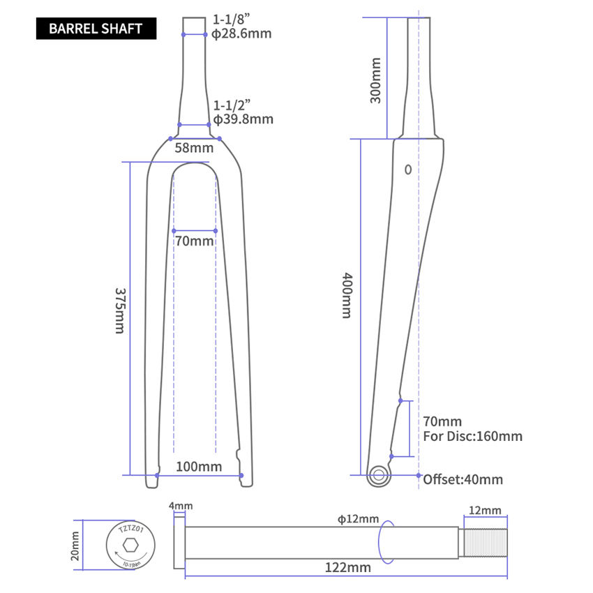 Forcella Bici da Corsa TOSEEK Tapered Thru 12x100mm 9mm 700c in Carbonio per Bici da Strada, Gravel e Ciclocross Compatibile con Freno a Disco