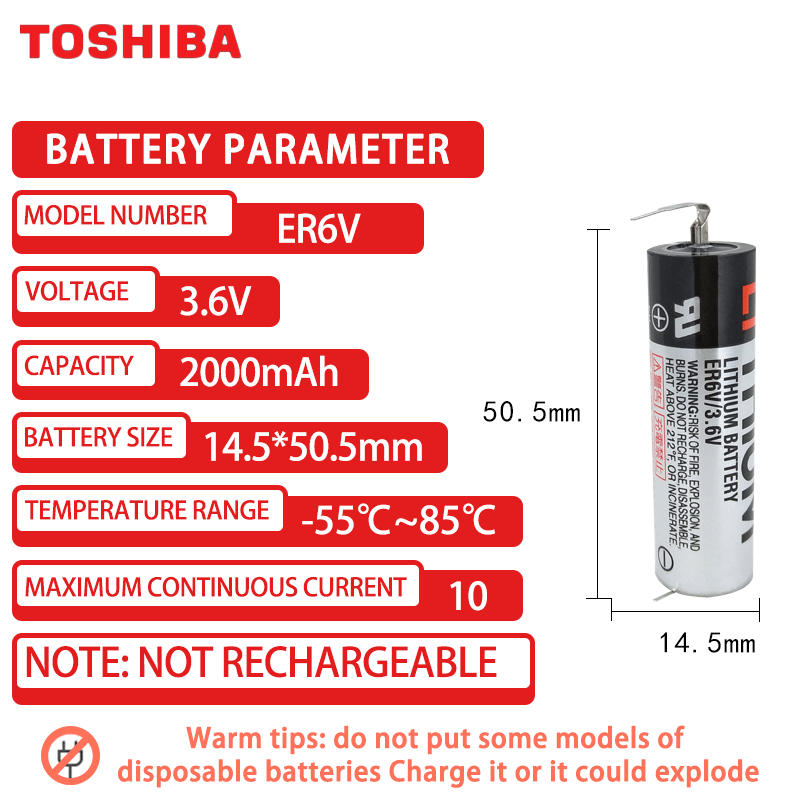 Batteria agli Ioni di Litio Non Ricaricabile TOSHIBA ER6V 3.6V Adatta per Encoder di Robot Panasonic