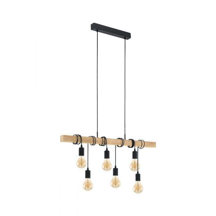 TOWNSHEND 6-LIGHT CHANDELIER, BLACK/BROWN, H. 100CM - 6X60W E27