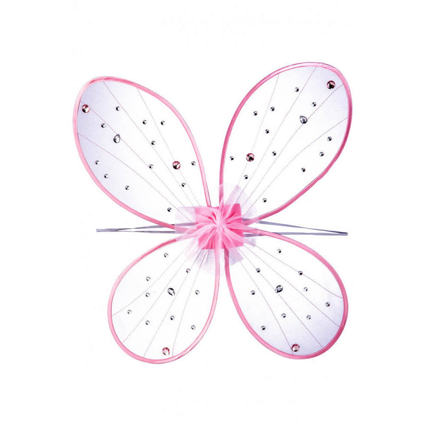 TRANSPARENT PINK VELVET WINGS WITH GEMS 58X52CM