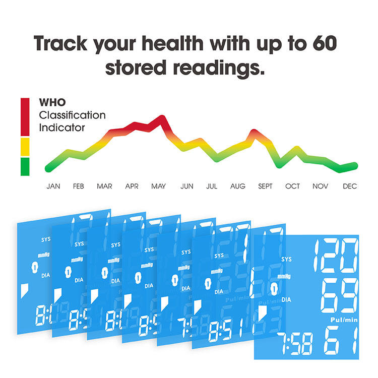 TRANSTEK retroilluminazione della frequenza cardiaca Monitor della pressione sanguigna da polso