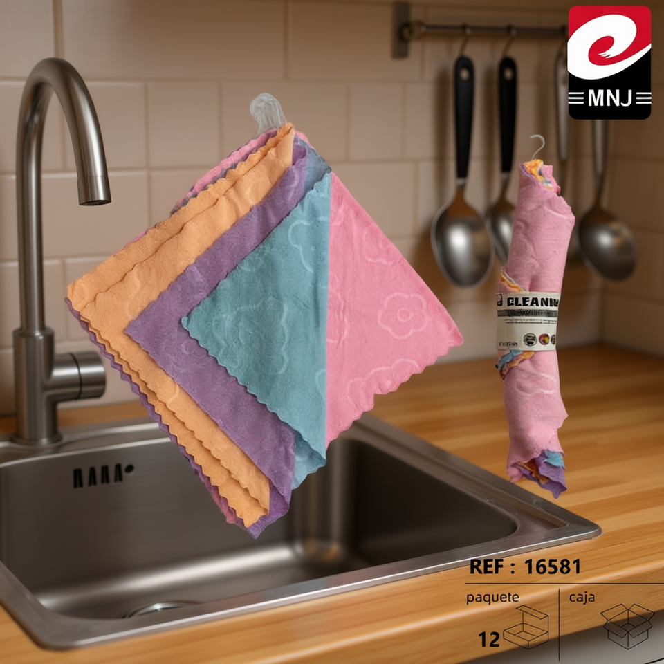 Set di 4 Panni in Microfibra TRAPO 30X30 con Ganci, per una Pulizia Efficace della Cucina