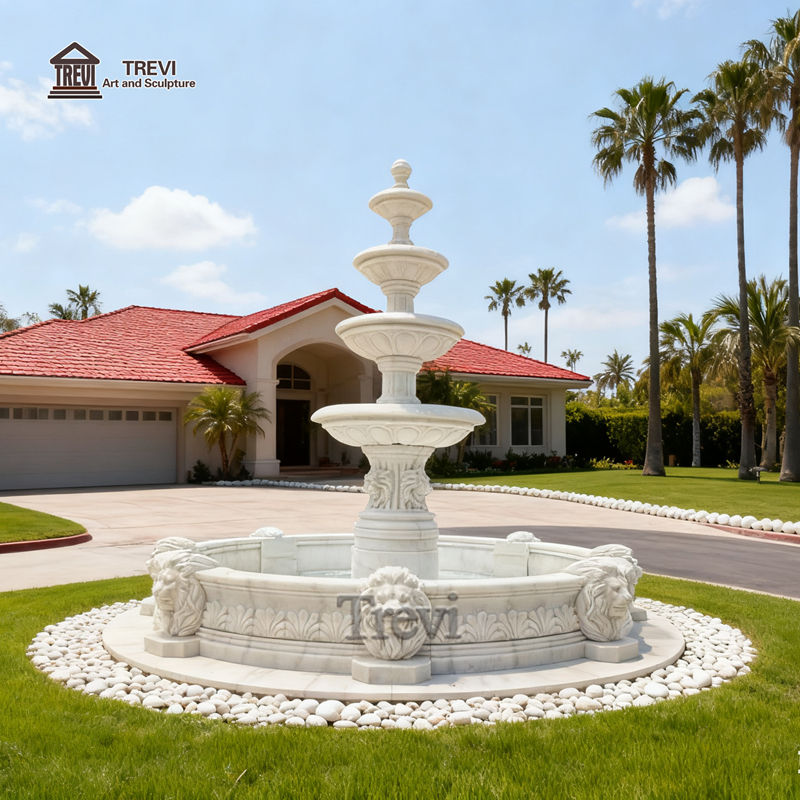TREVI Art Natural Stone Garden Products in Natural Stone Rock Marble Outdoor 4 Tiered Fountain for Yard