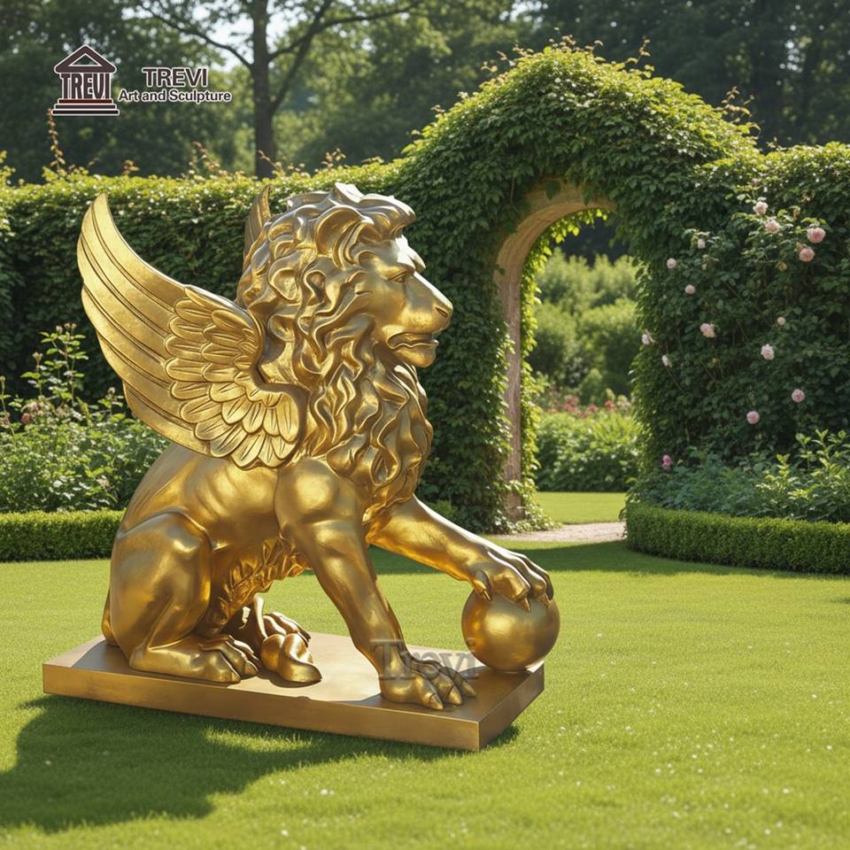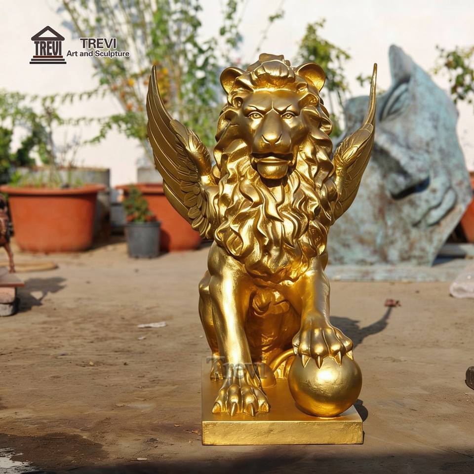 Statua di Leone con Ali in Bronzo Dorato a Grandezza Naturale TREVI, Scultura per Souvenir e Ornamento da Giardino