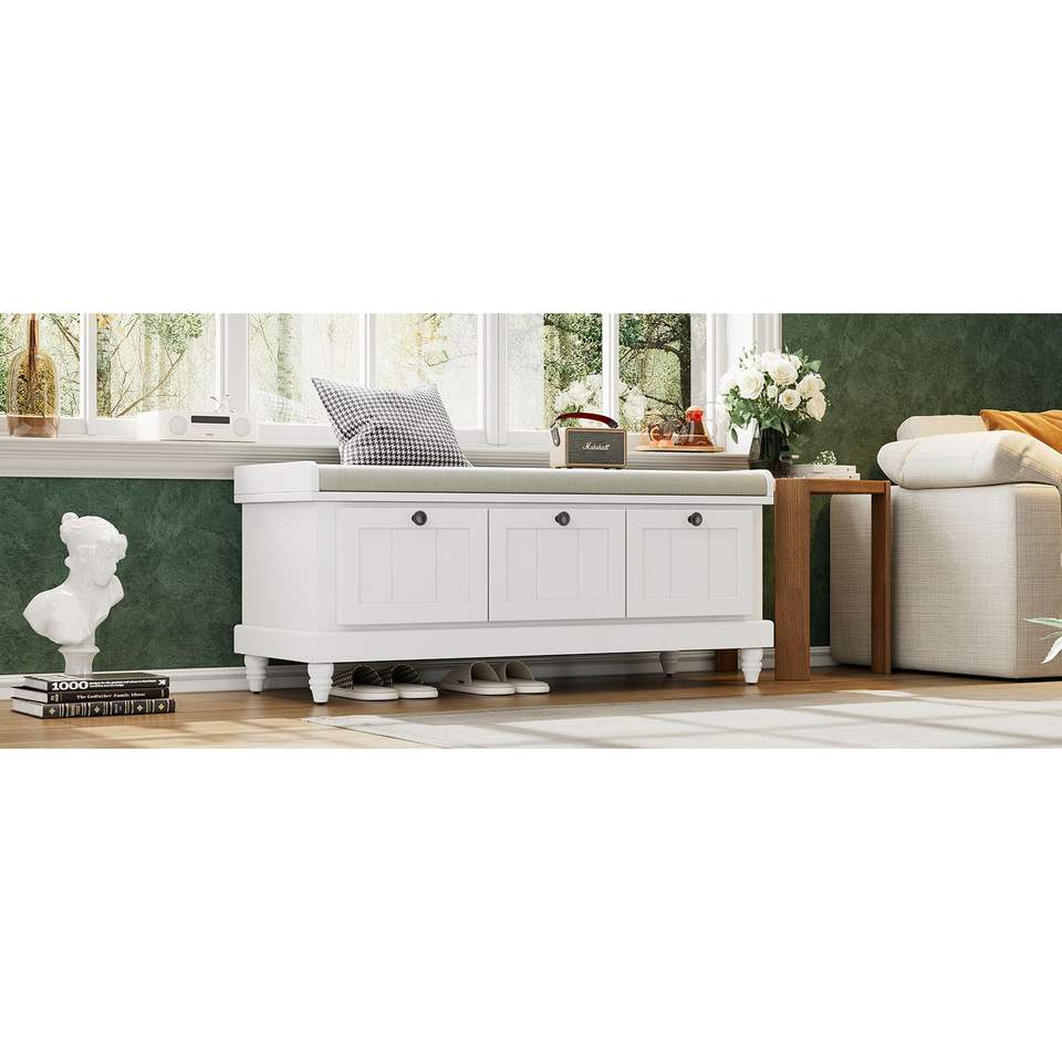 TREXM classico panca scarpe bianco cuscino con tre cassetti ingresso scanalato corridoi di stoccaggio per soggiorno mobili
