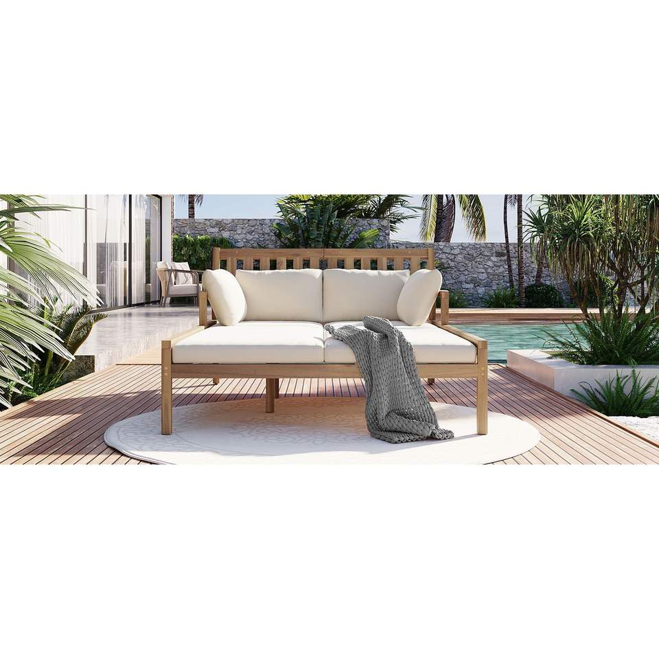 TREXM divano letto esterno per Patio a bordo piscina cortile a quattro federe in legno curvo braccioli luce Teak Beige cuscino Set da giardino