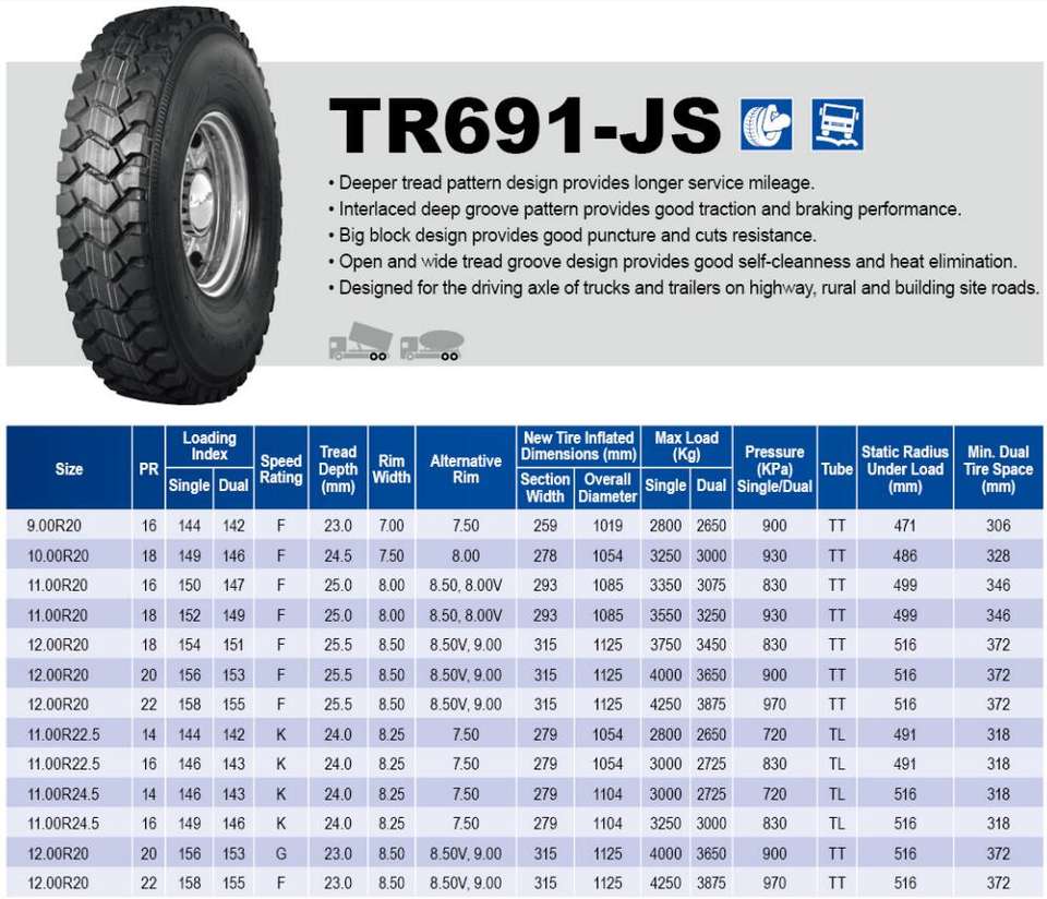 Pneumatici TRIANGLE 12.00R20 22PR TR691JS Produttore Cinese Pneumatici Radiali