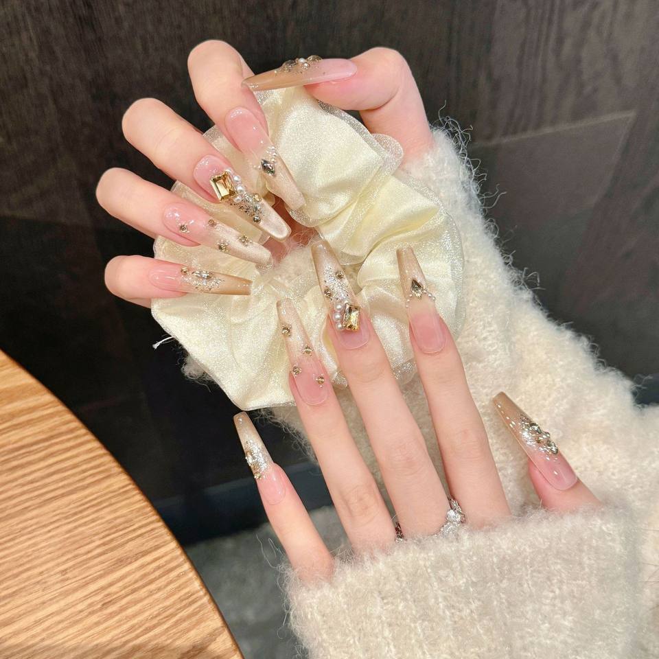 TSZS Luxury Coffin Rhinestone Handmade Press on Nails Red Black Long Almond Cat Eye DIY Press on Nails Nail Wholesale