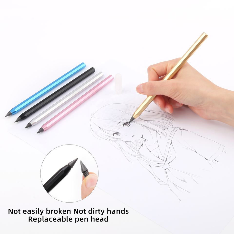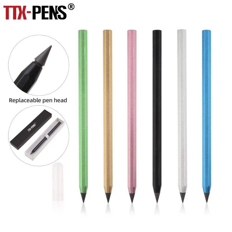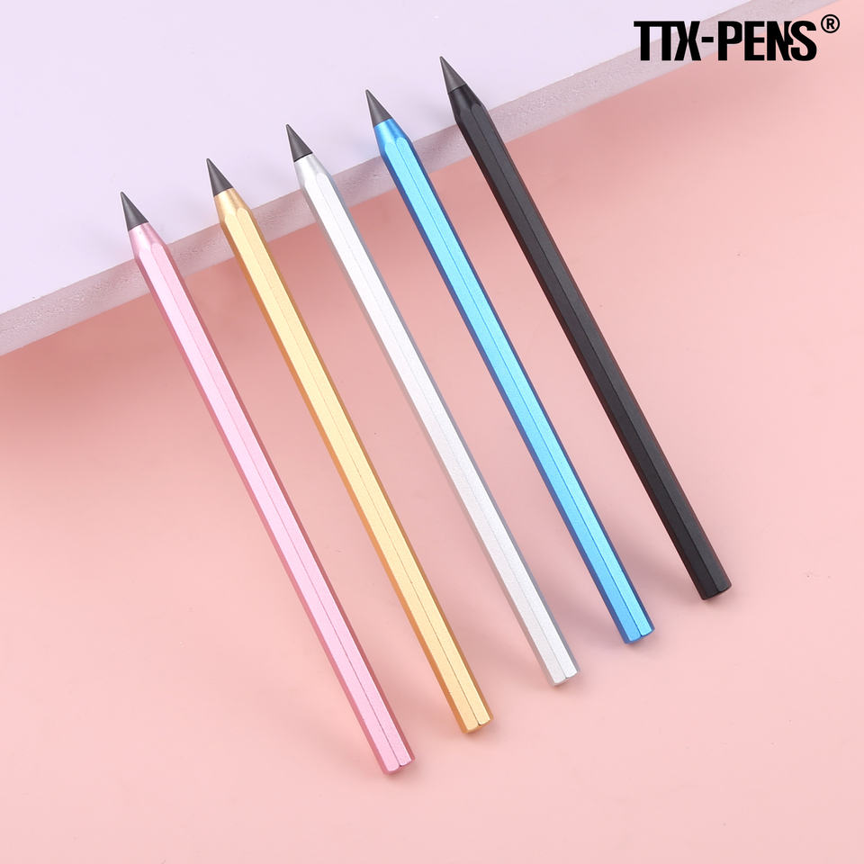 TTX matita magica senza inchiostro personalizzata in metallo poligonale infinito con punta a matita eterna