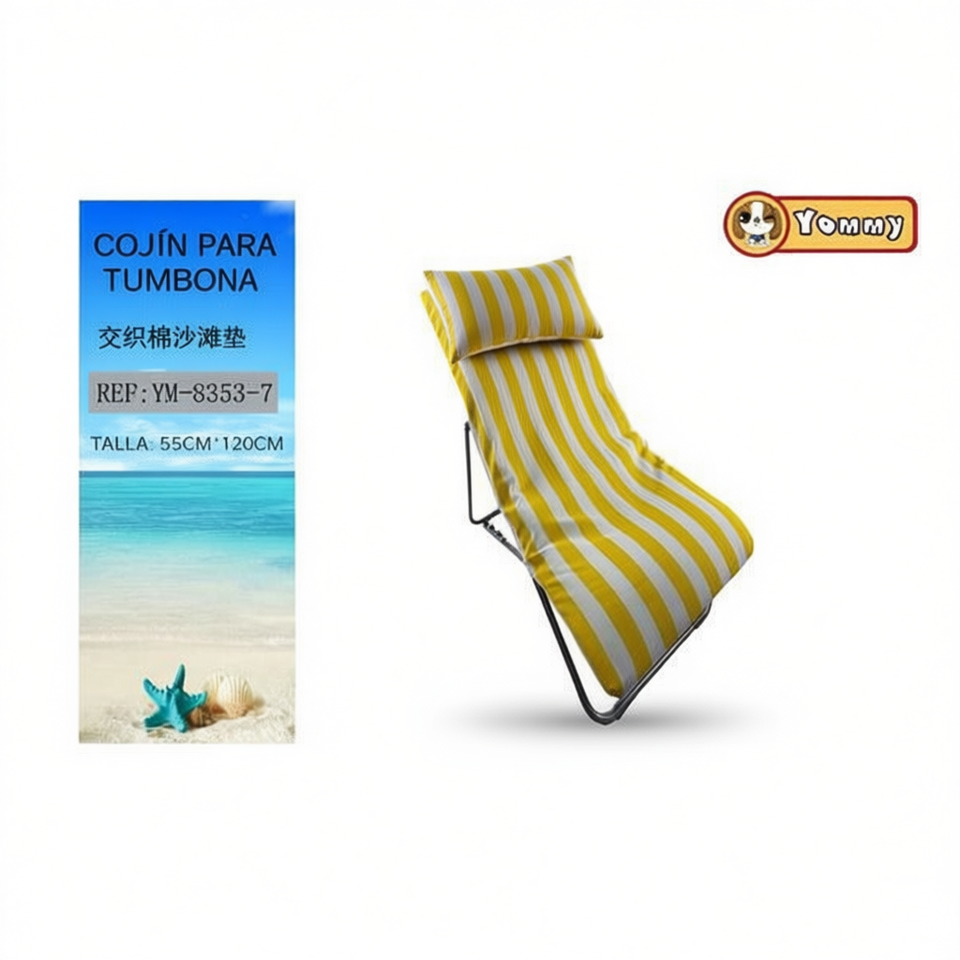 Tappetino da Spiaggia in Cotone Intrecciato TUMBONA 55*120*8CM-7 con Cuscini e Poggiatesta in Spugna