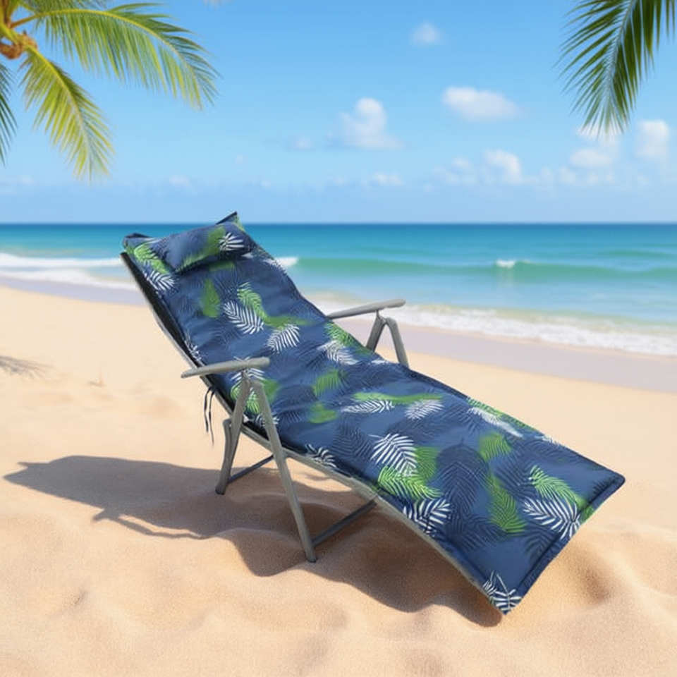 TUMBONA 55X180CMX4CM-4 Interwoven Cotton Beach Mat with Sponge Seat Cushions & Pillow