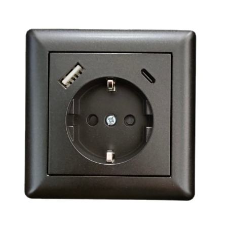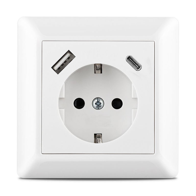 TUV Flush-mounted USB C 17.5W Fast Charger Schuko Socket with Built-in USB Type C for IPhone IPad Galaxy Wall Socket