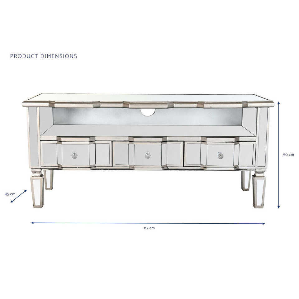Mobile TV con Specchio in MDF, Dimensioni 112x45x50cm, Finitura Argento