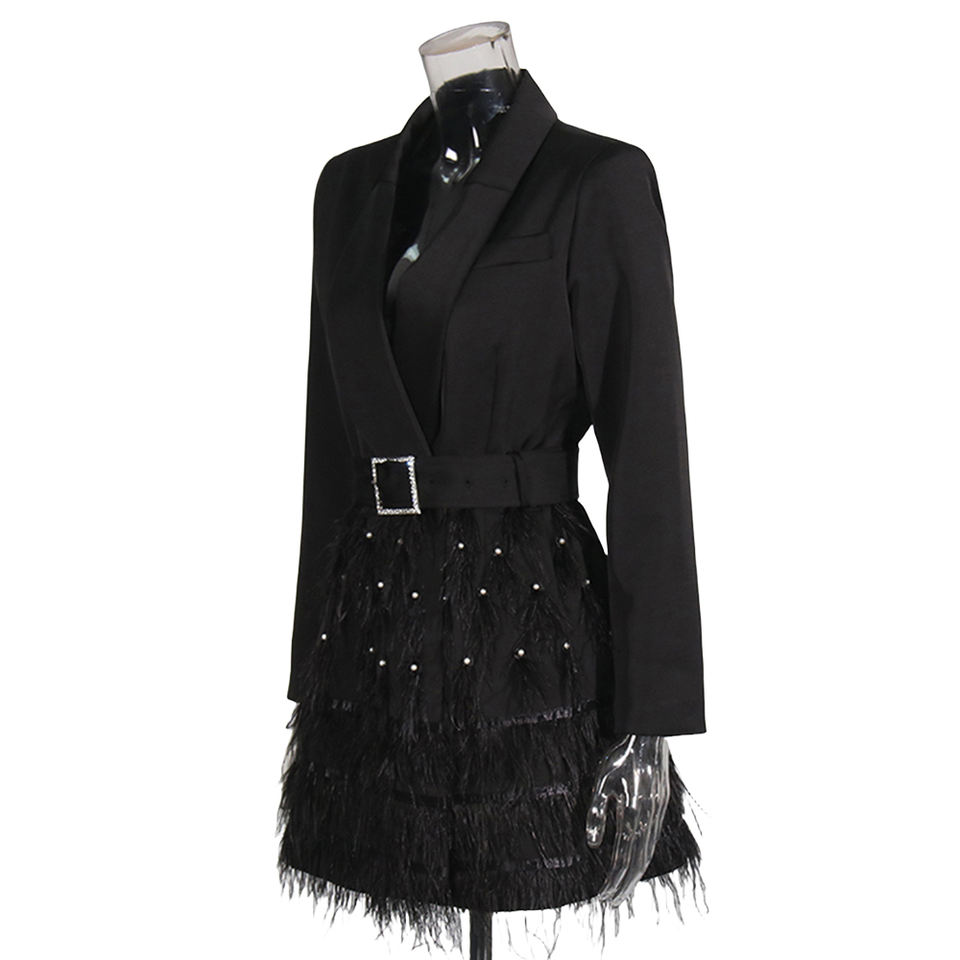 TWOTWINSTYLE Nuovo Abito Elegante con Sensazione di Alta Classe, Vestito da Festa Nero con Frange di Piume, Gonna Corta