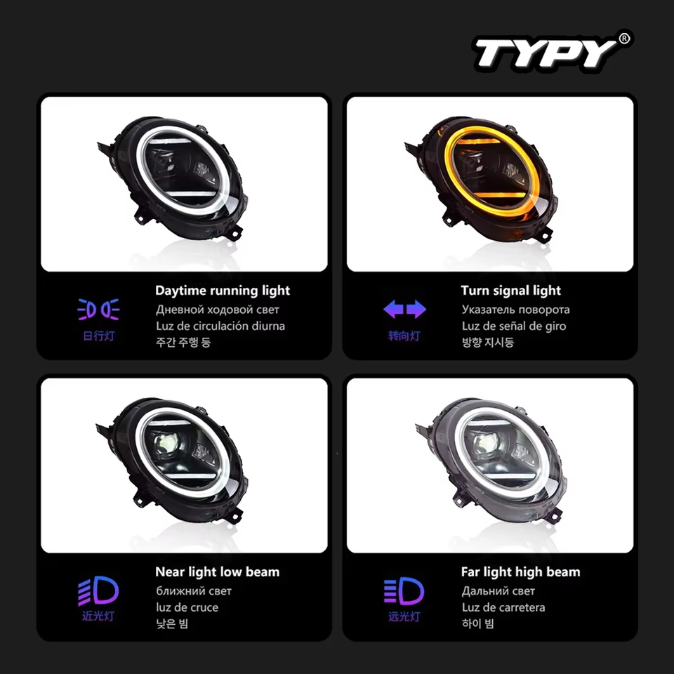 Nuovo Faro LED TYPY, Aggiornamento Modificato del Gruppo Ottico Completo per BMW Mini F56 2014-2021, Indicatori di Direzione e Luci Diurne