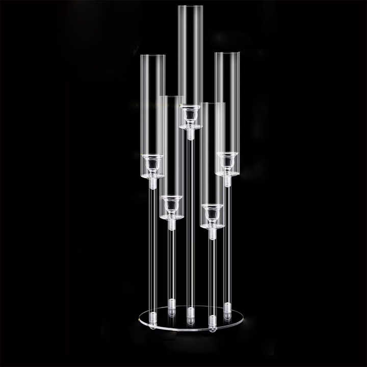 Decorazioni da centrotavola per matrimonio riutilizzabili a 5 bracci candelabri in vetro trasparente acrilico portacandele