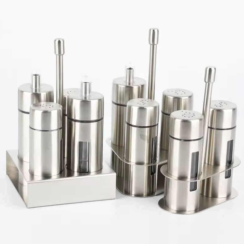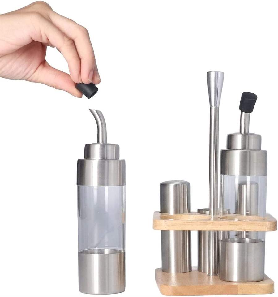 Set Dispenser per Olio e Aceto da Tavola, 3 Bottiglie in Acciaio Inox Antigoccia, Contenitori per Condimenti con Supporto