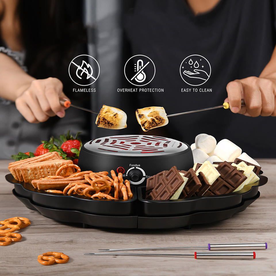 Set Regalo per Arrosto di Marshmallow Elettrico Senza Fiamma da Tavolo con 4 Vassoi Staccabili e 4 Forchette per Arrosto, Idea per una Serata Romantica