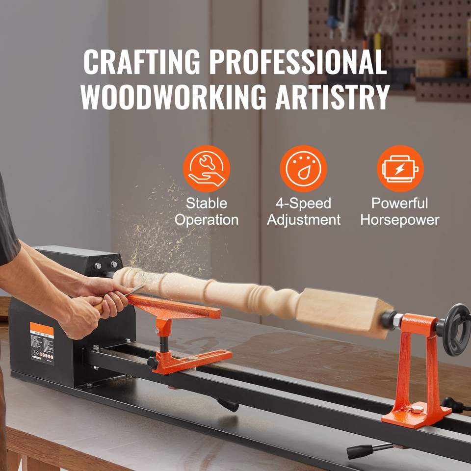 Tornio da banco per legno con motore da 0,5 HP 370W, velocità variabile 885/1245/1715/2425 RPM, dimensioni 14x40 pollici, motore incluso