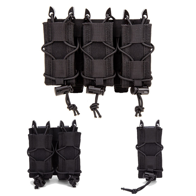 Porta Caricatore Tattico 9mm Singolo/Doppio/Triplo, Fondina Molle per Caricatore, Supporto per Torcia da Caccia, EDC in Nylon, Capacità 3L