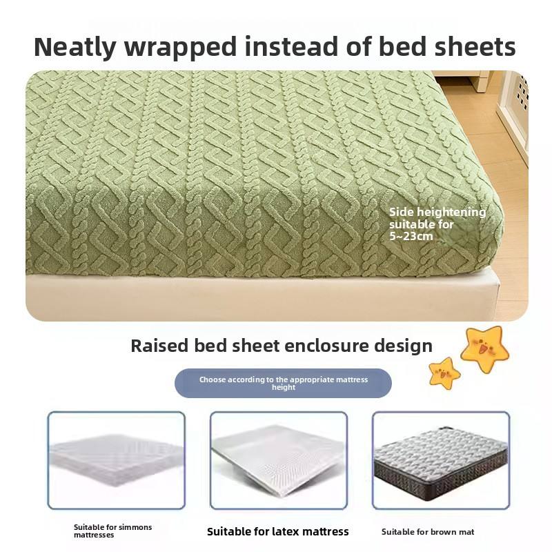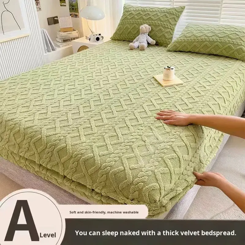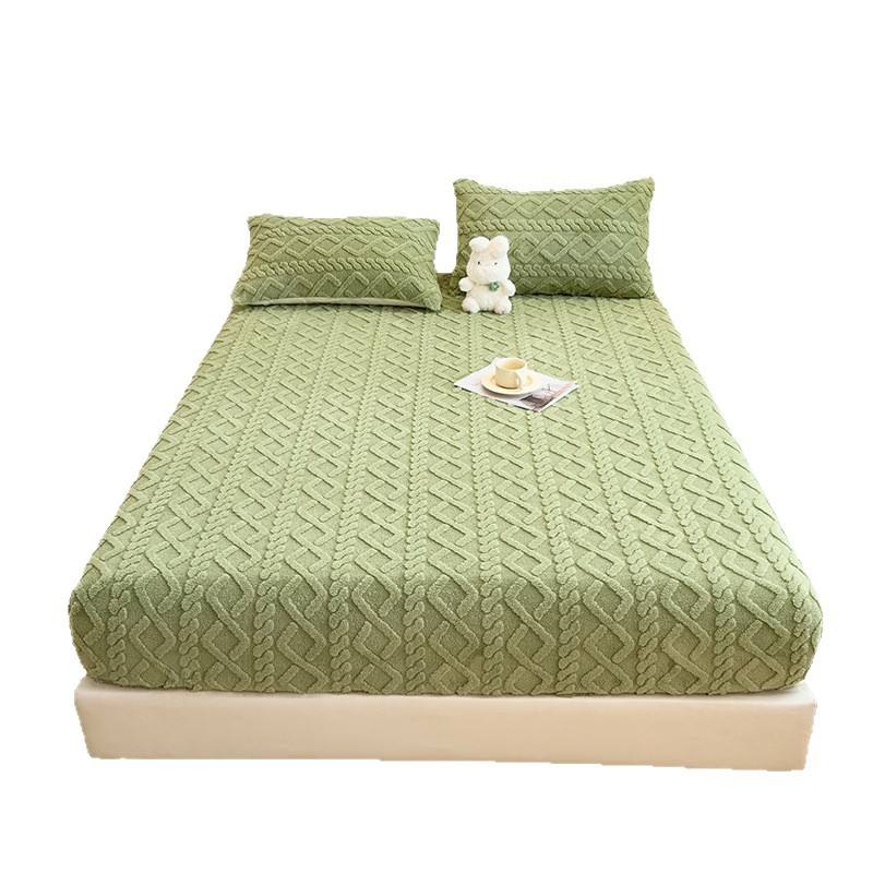 Set di lenzuola in tre pezzi in taffetà lavorato a maglia in poliestere, pile invernale color corallo con copriletto in flanella antiscivolo