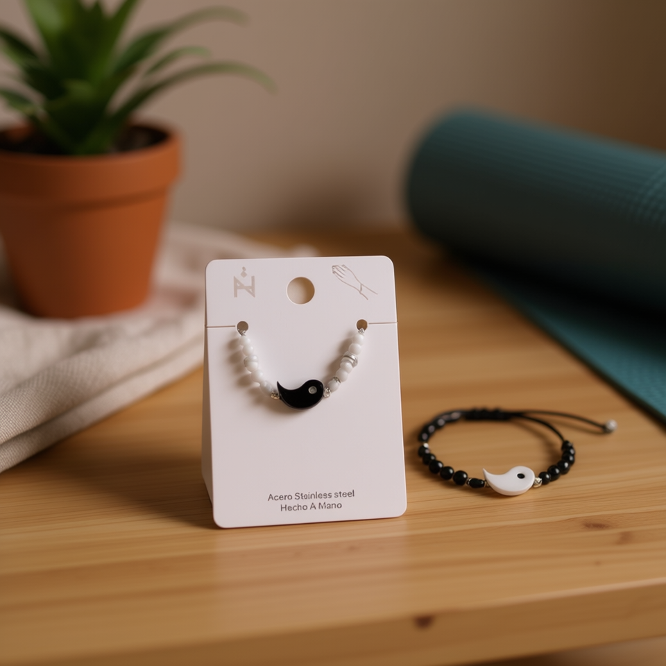 Bracciale con perline Angelina Tai Chi in acciaio inossidabile, fatto a mano, unisex, gioiello alla moda, idea regalo