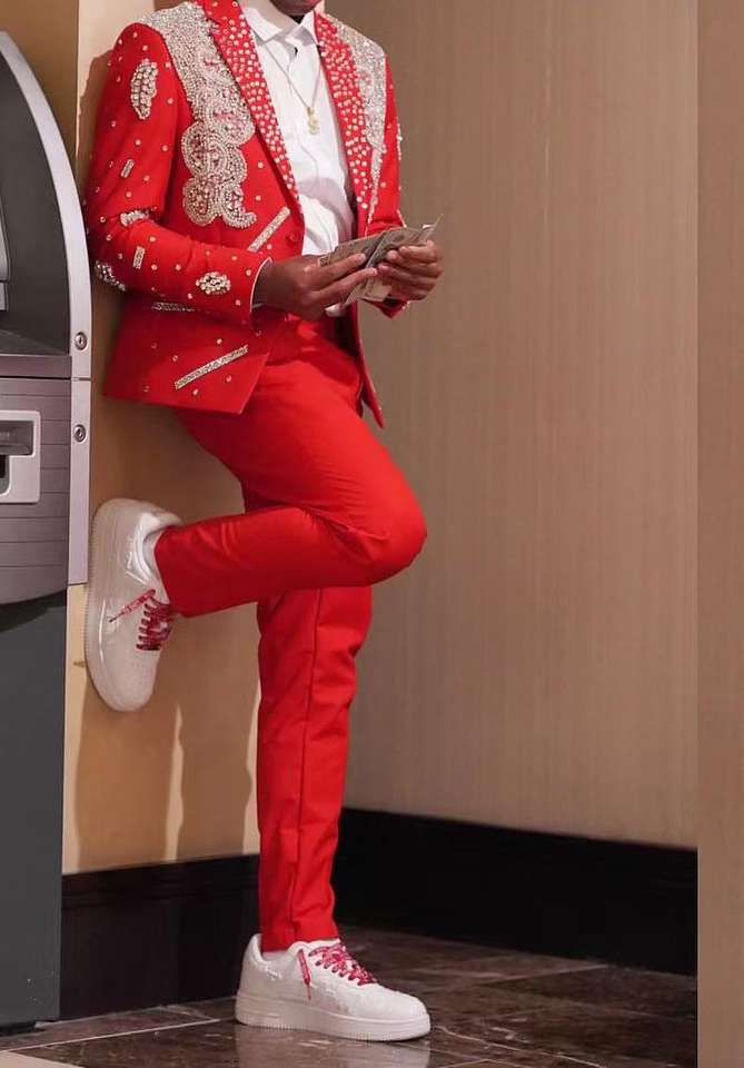 Abito aderente da uomo ricamato da uomo con ricamo floreale da sposa per sfilata da uomo