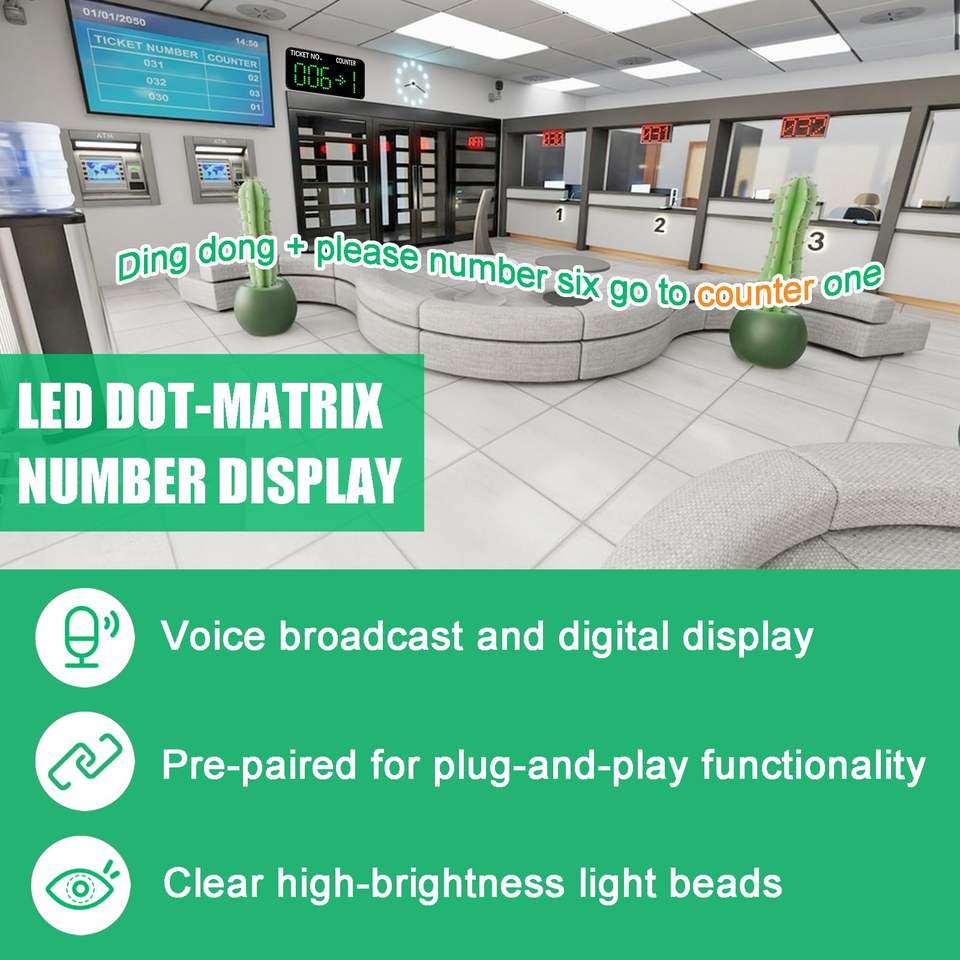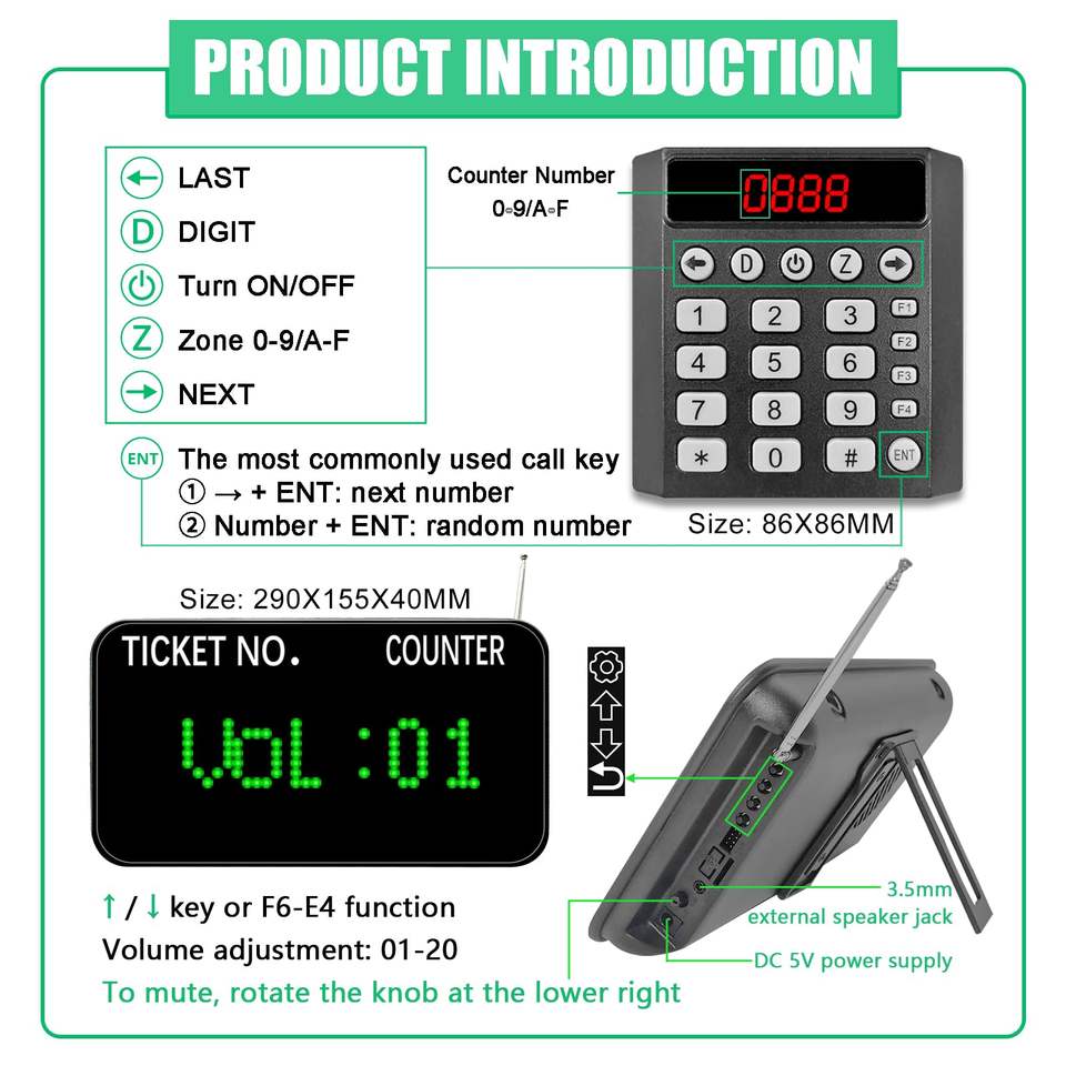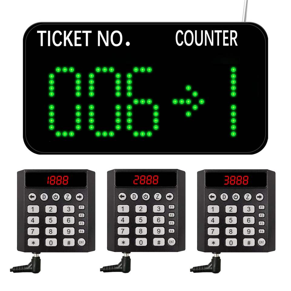 Sistema di Chiamata Wireless con Numeratore Automatico, 3 Tastierini e Schermo LED Verde per Uffici, Cliniche, Banche e Ristoranti