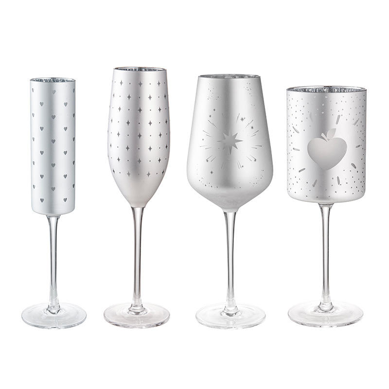 Alta tazza di vetro incisa con stella e cuore elegante coupé di Champagne per Home Bar Pub per il servizio di vino e bevande