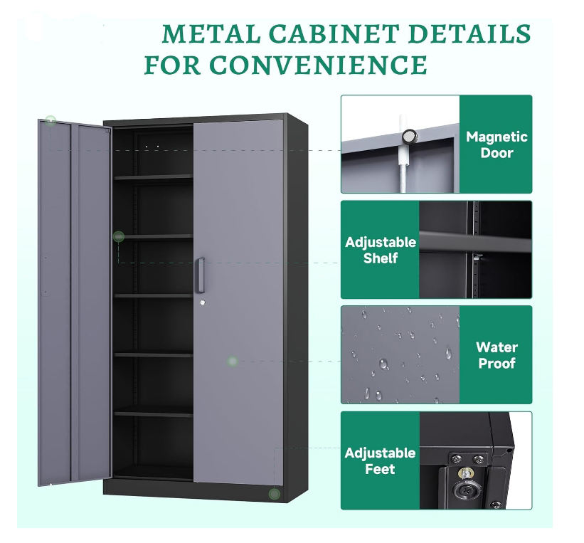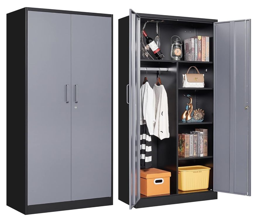 Armadietto di stoccaggio in metallo alto 72 "36" 18 "con 2 porte e 4 ripiani grande armadietto di utilità per il Garage di casa e il bagno dispensa