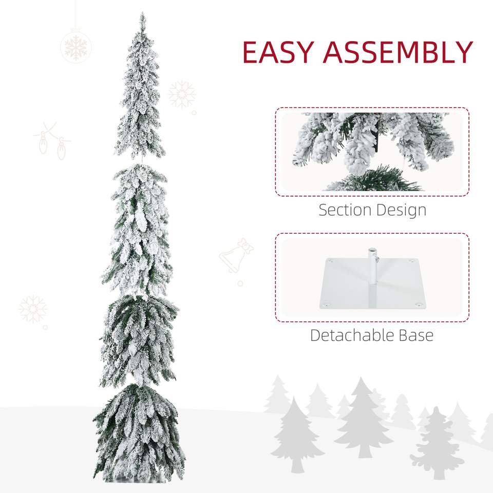 Albero di Natale a Matita Alto Preilluminato con Luci LED Bianco Caldo, Rami Artificiali Effetto Neve Colorati per Decorazioni Natalizie