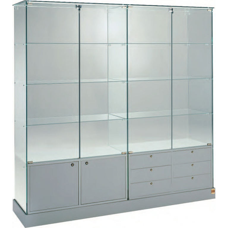 Tall Tempered Glass Display Cabinet L142xD46xH180 cm 2 Door and 6 Drawer from Italy for Displaying Clothes