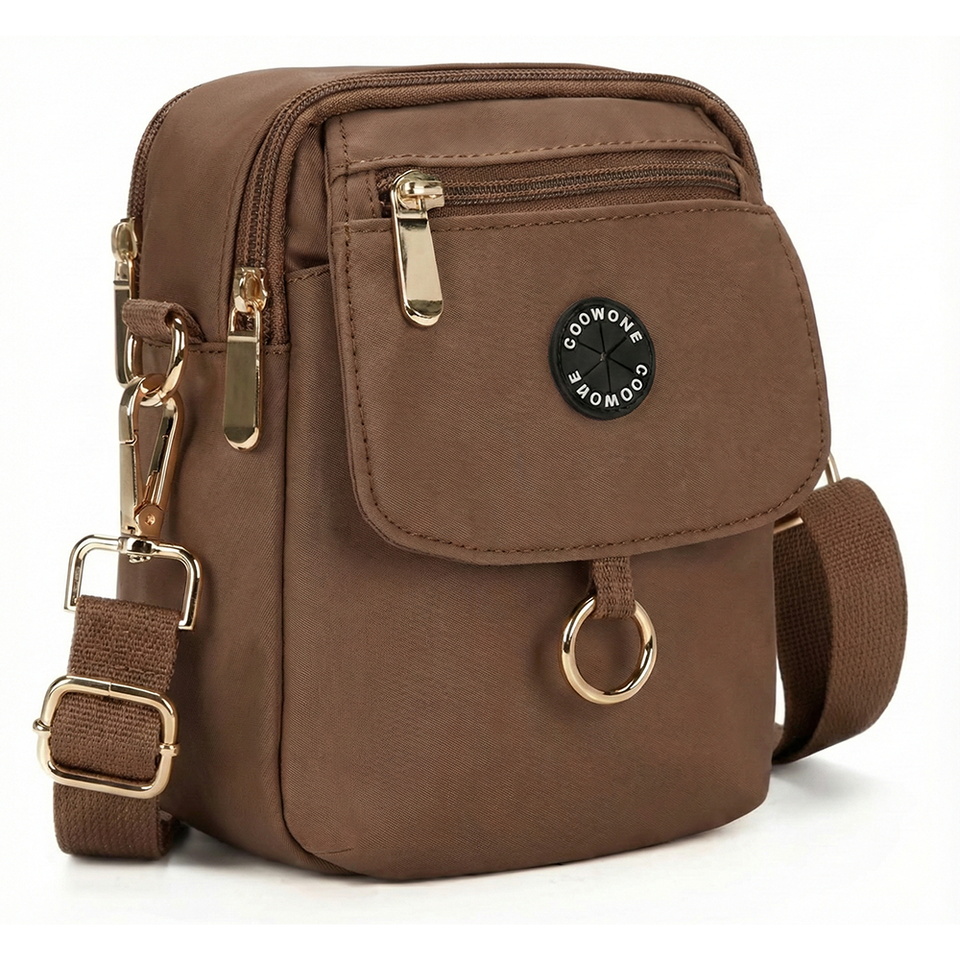 Borsa tracolla per cane in nylon color sabbia con tasca porta-premietti, cinghia convertibile, portasacchetti e scomparti