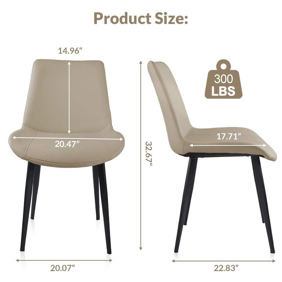 Sedia da Pranzo Moderna in Pelle PU Marrone Chiaro con Gambe in Metallo, Set di Sedie Imbottite Confortevoli per Cucina, Ristorante, Soggiorno, Sala Riunioni