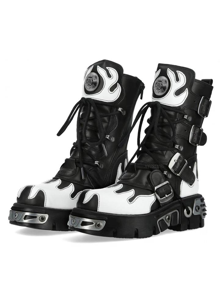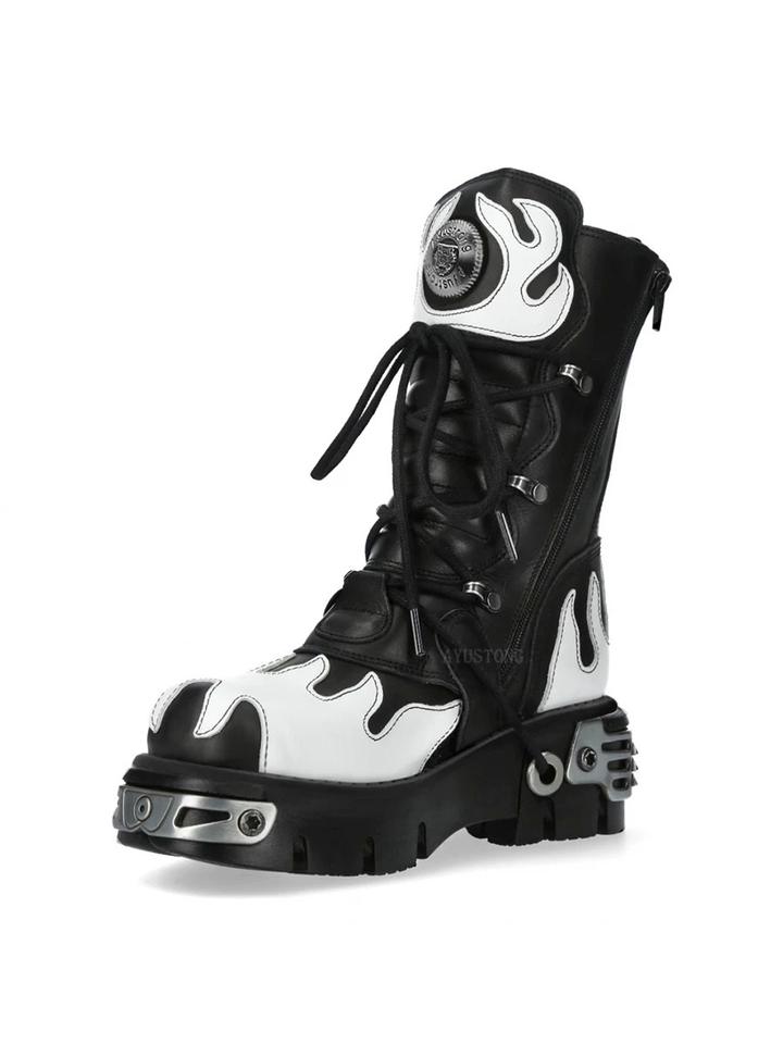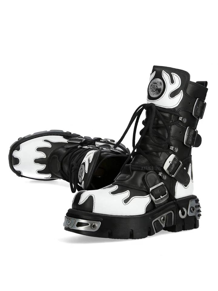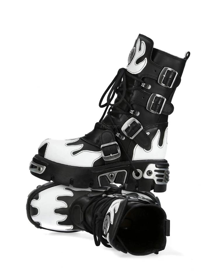 Stivali da Moto con Rivetti Multicolore, Nuovi Stivali Punk Rock da Strada con Tacco Spesso, Stivali Gotici con Fibbia e Rivetti a Fiamma