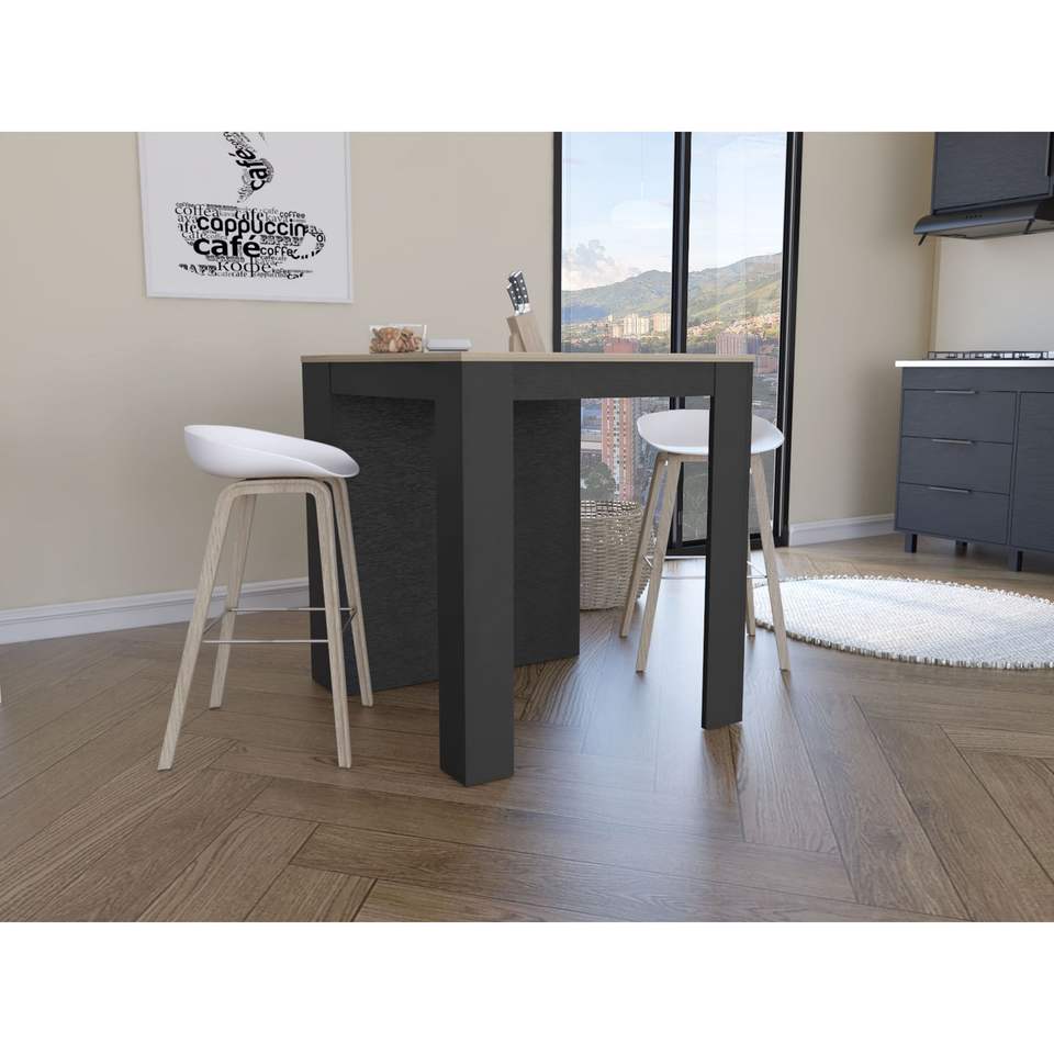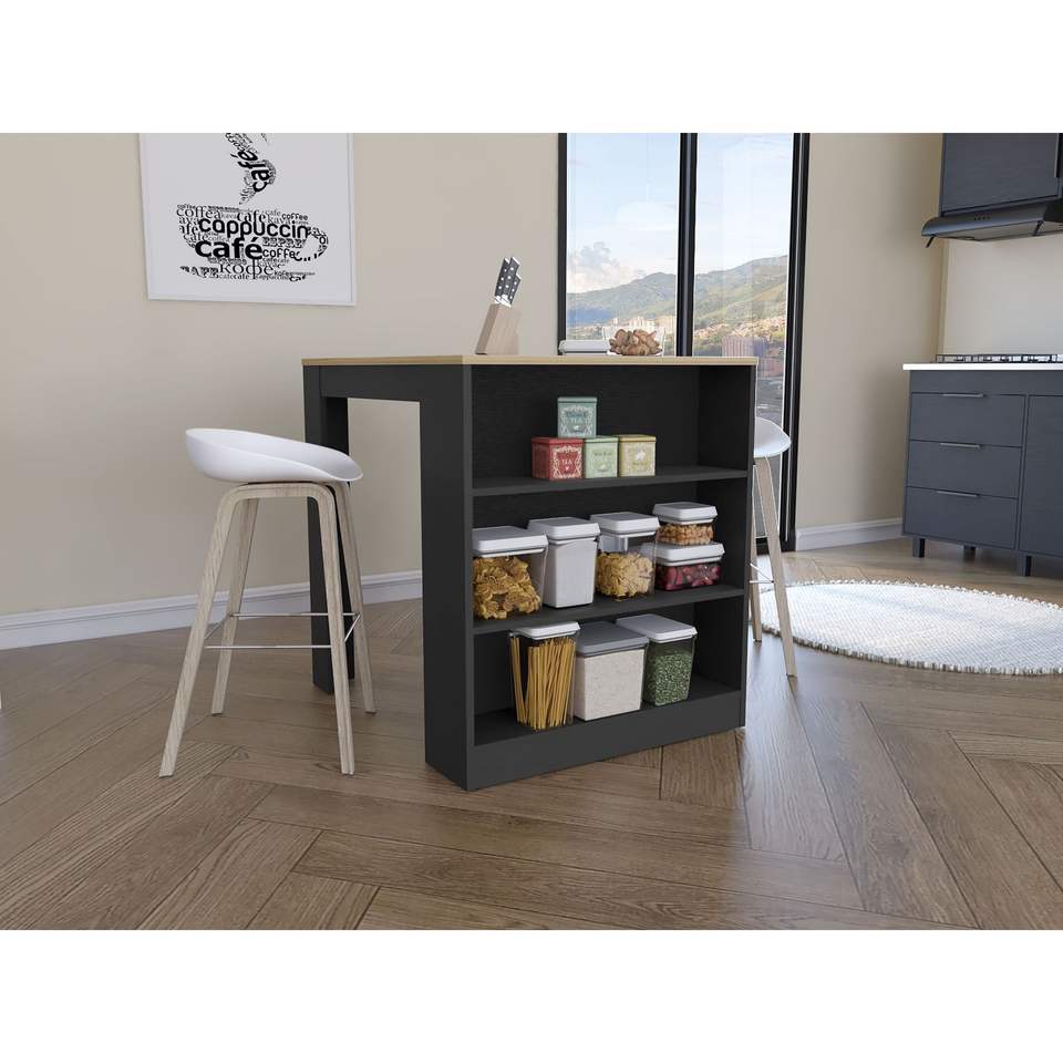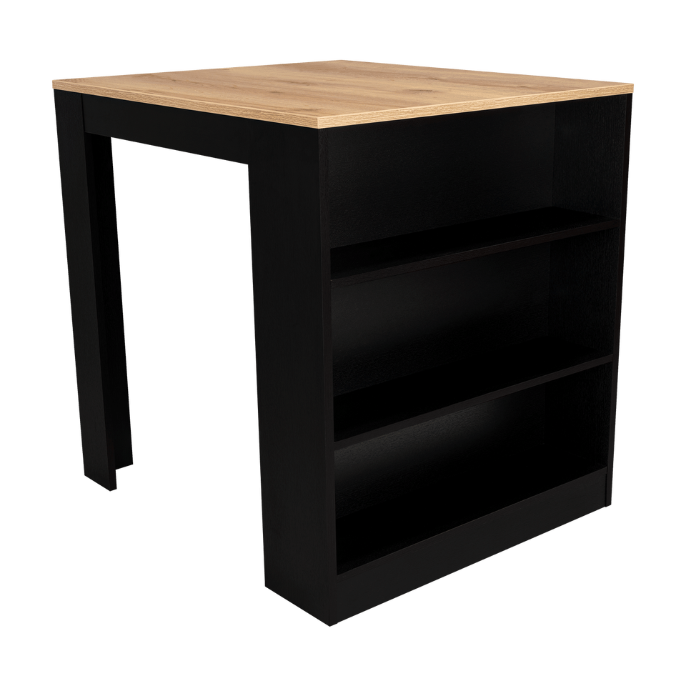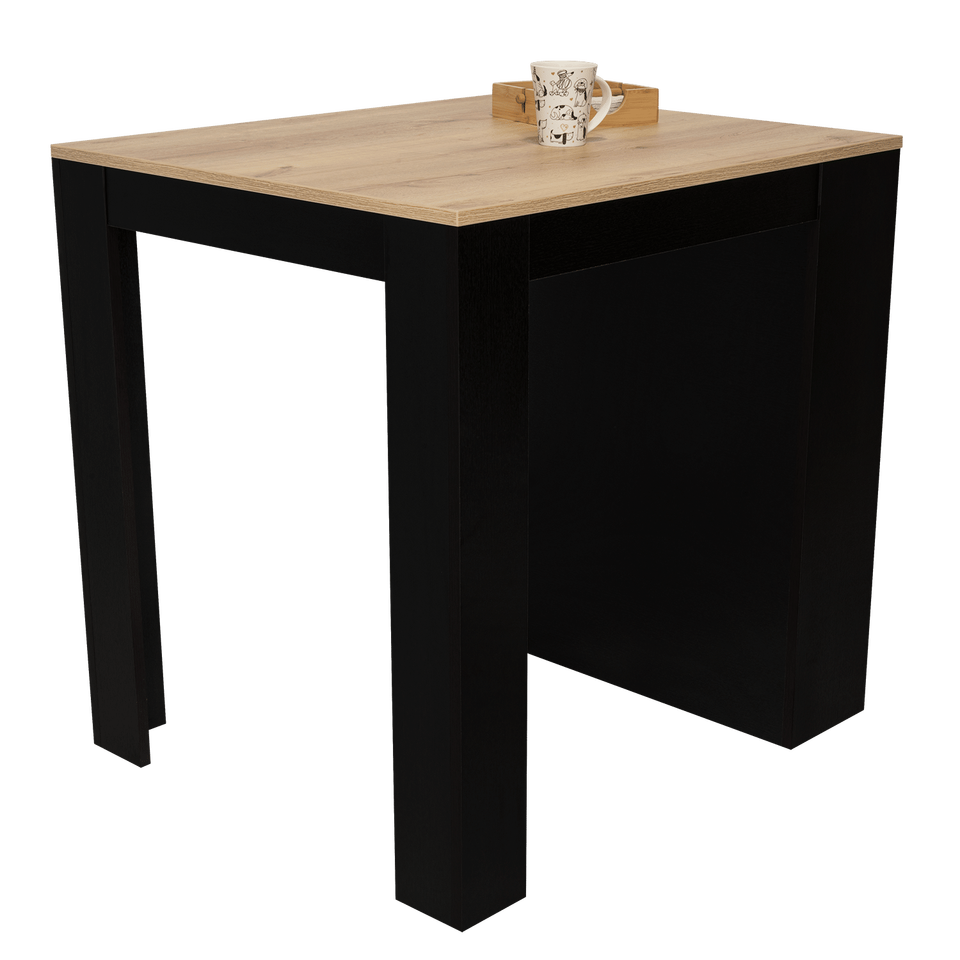 Tavolo da Pranzo da Cucina Tanna con Due Gambe e Tre Ripiani Laterali, Colore Nero/Pino