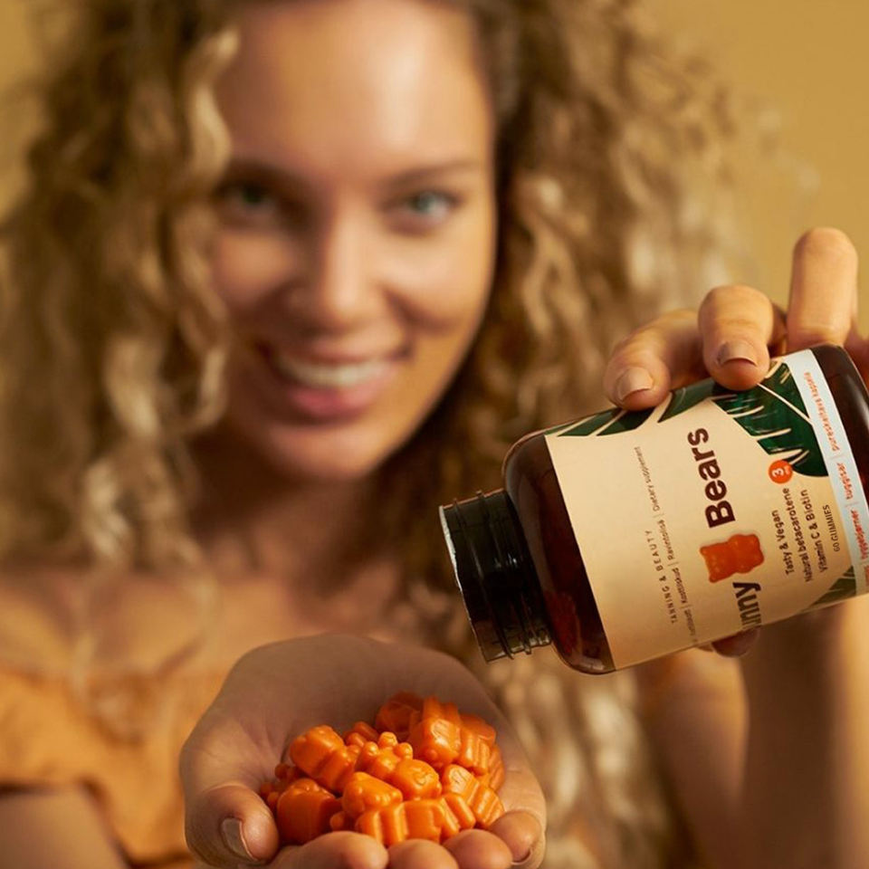 Supporto abbronzante Gummies orso vitamine con Beta Carotene rame licopene selenio zinco per il sistema immunitario ti meritate grande abbronzatura
