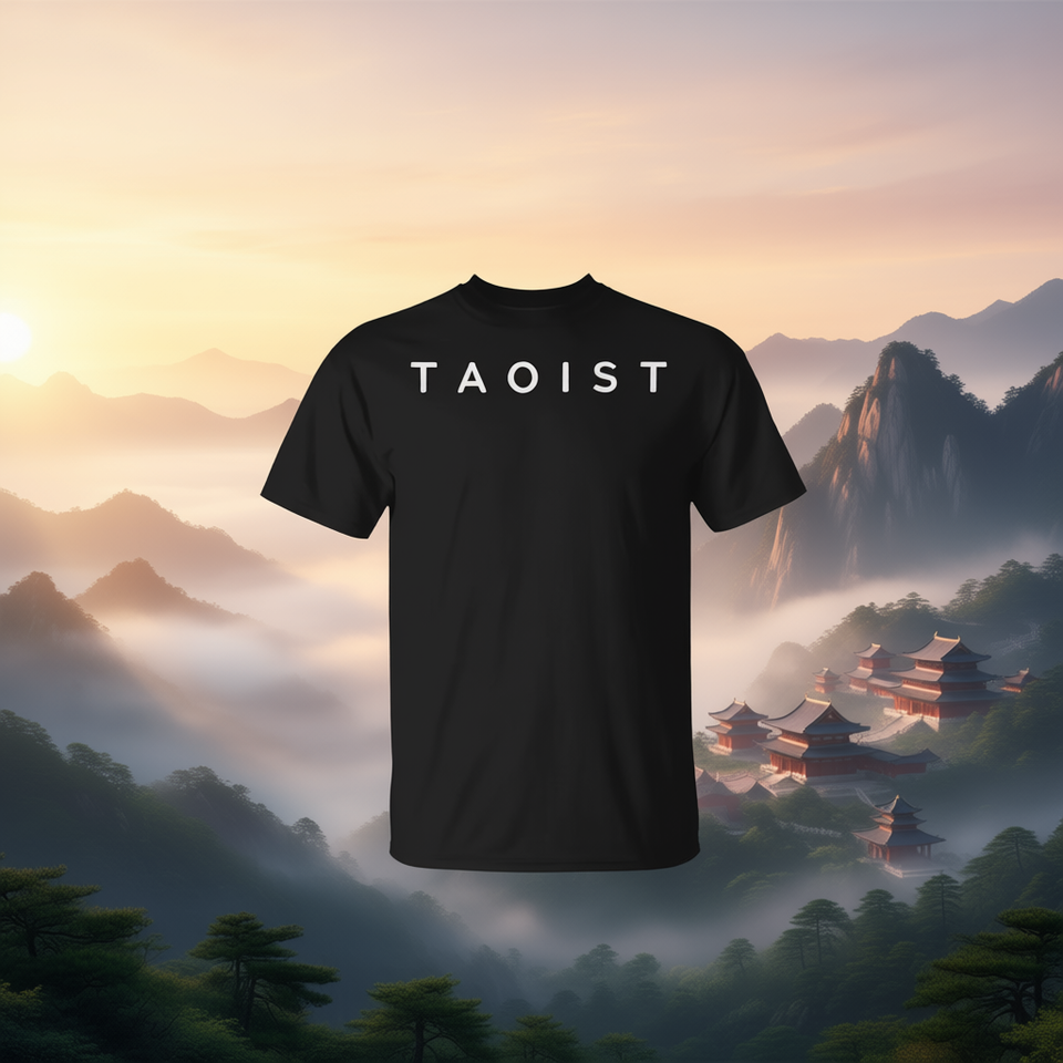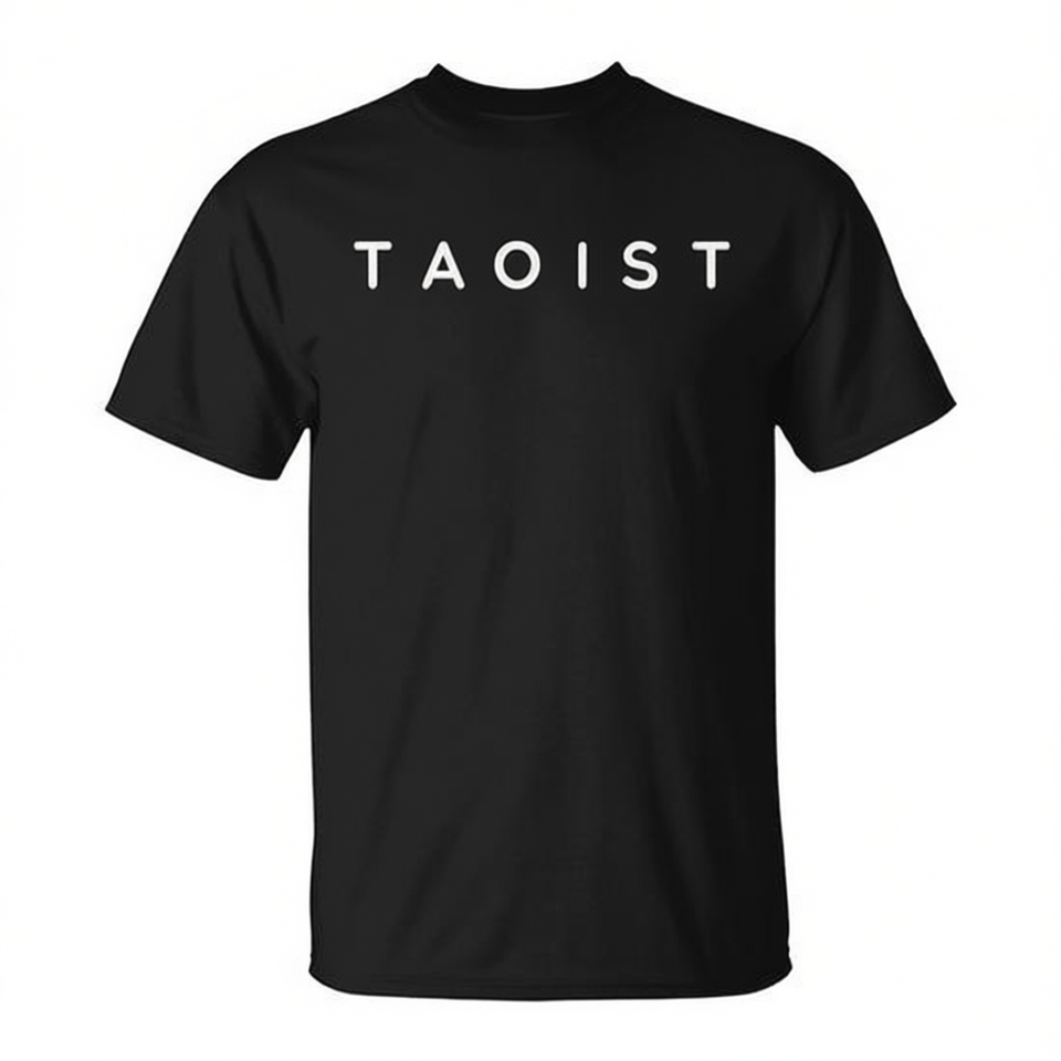T-shirt Taoist con design moderno con caratteri neri, taglia unisex per adulti
