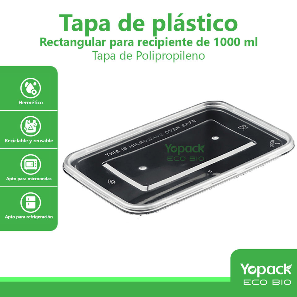 Tapa plana rettangolare de PP para recipientes de 1000 ml, paquete de 300 piezas, invios desde Mexico