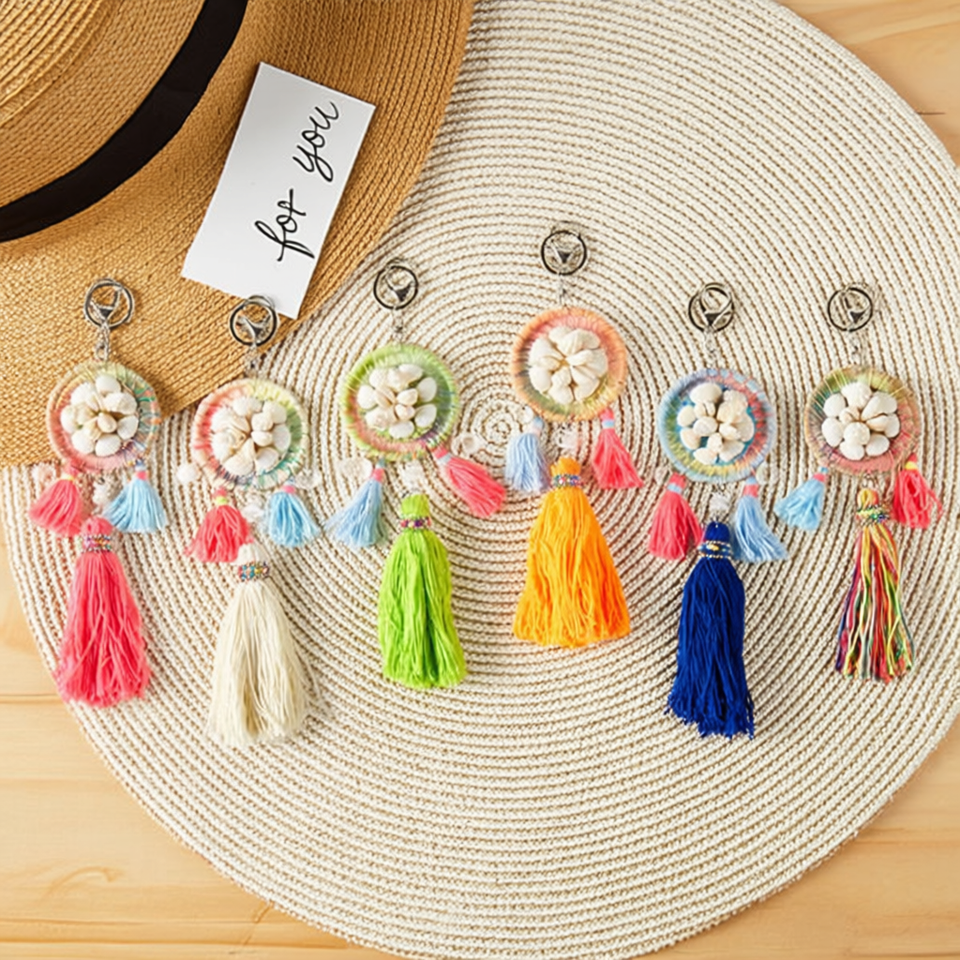 Portachiavi con nappa, ciondolo con perline colorate a forma di conchiglia, stile boho, per borsa o portachiavi, scatola da 360 pezzi
