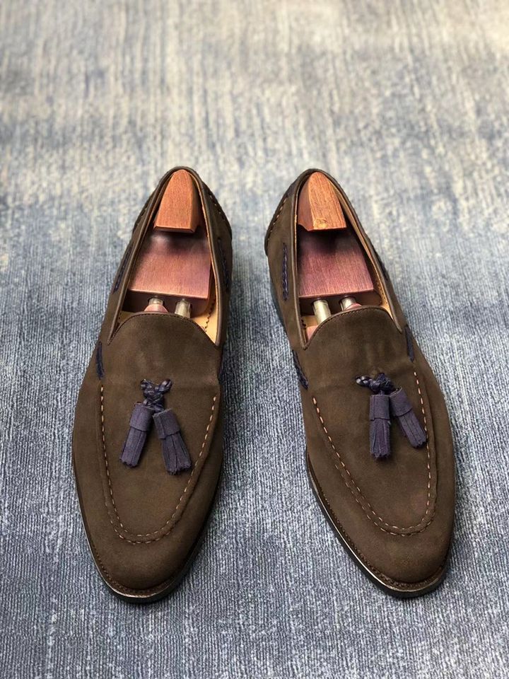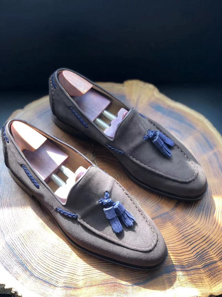 Tassel Loafers Suede Leather Solid Breathable Summer Autumn Trendy Dress Shoes Casual No Lace Men's Footwear Multiple Colors