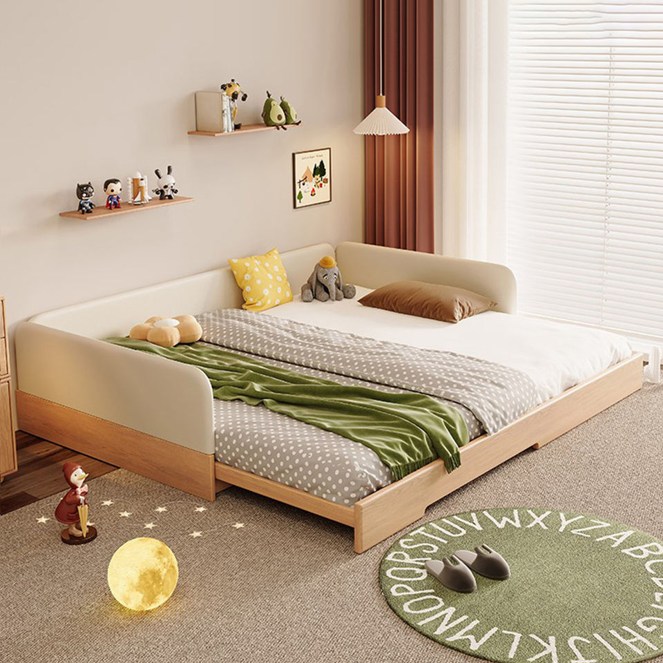Letto per Bambini Estraibile Tatami, Letto per Bambini in Legno Resistente con Sponde di Protezione, Stile Minimalista, Set Letto per Bambini Estensibile in Pelle