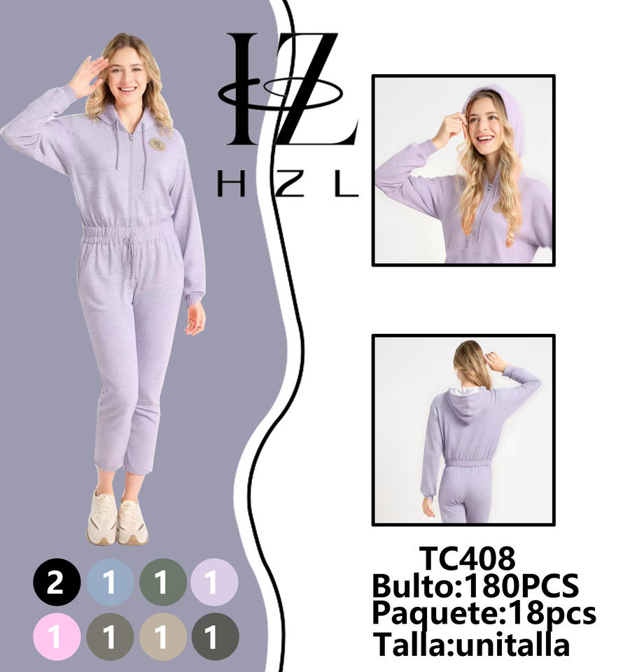 Tc408 Women's Hooded Jumpsuit Long Sleeve High Waist Knitted Solid Color Casual Breathable Spandex Cotton Ankle Length
