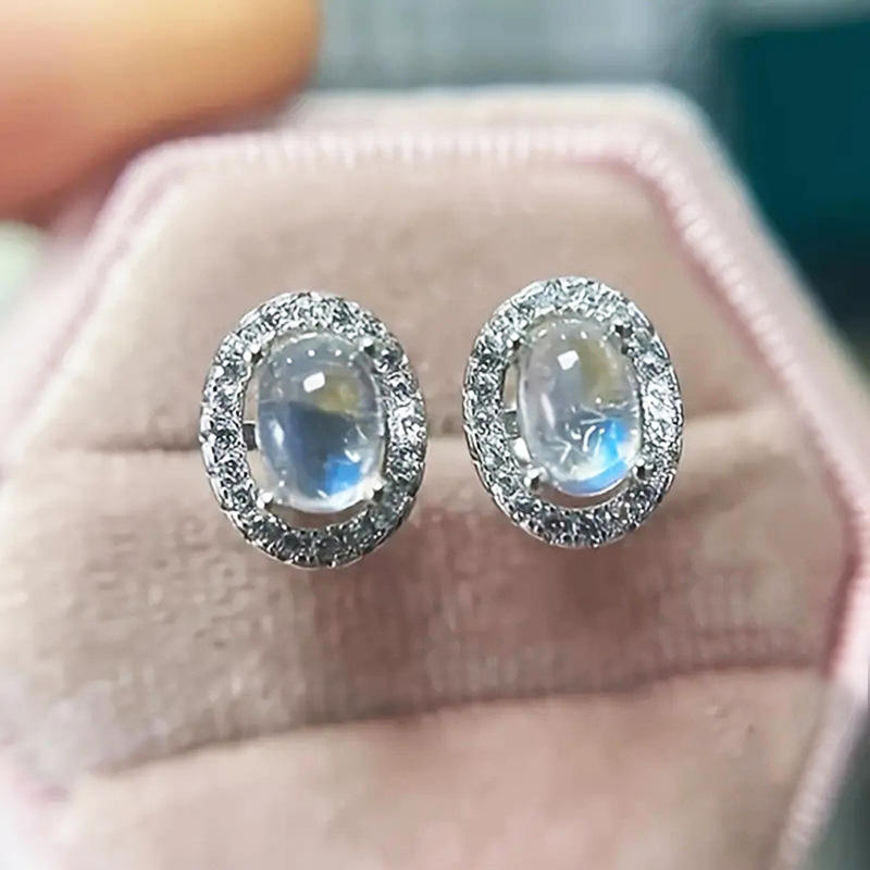 Tdc Oval Cut Crystal Stud Earrings White Gold Plated 925 Silver Bezel Setting Classic Wedding Jewelry For Women