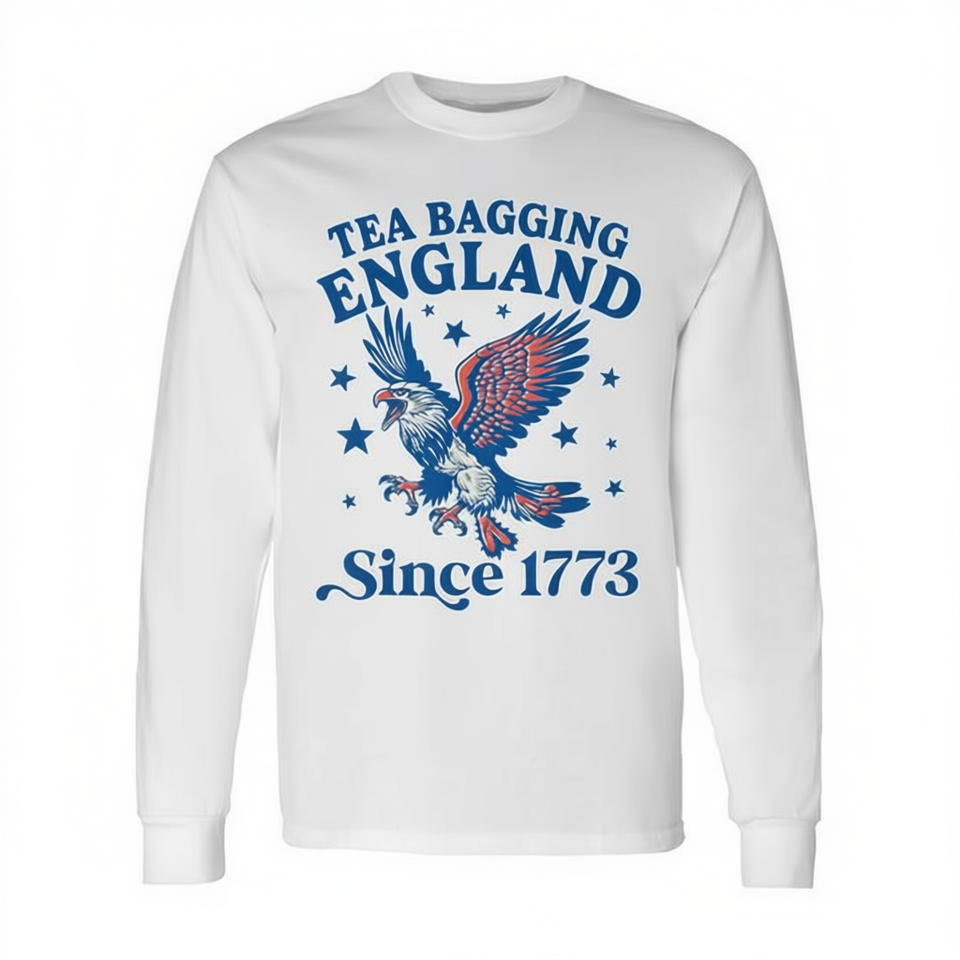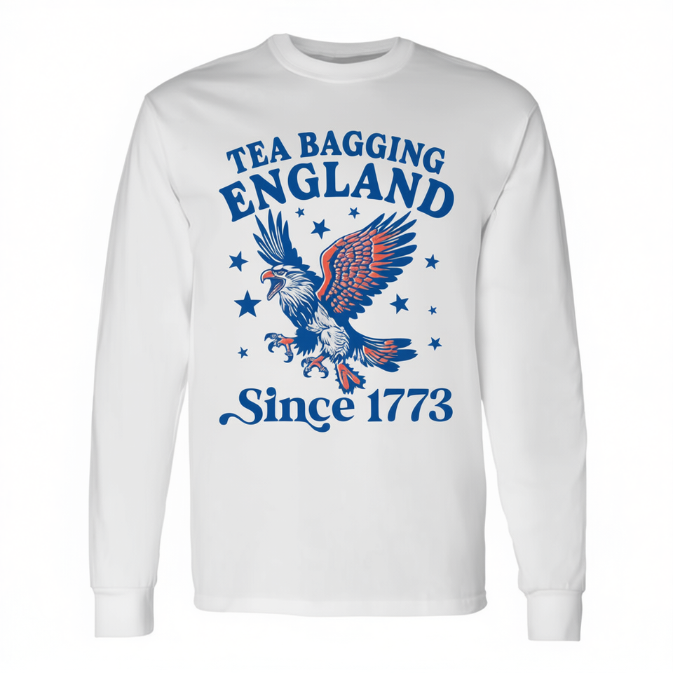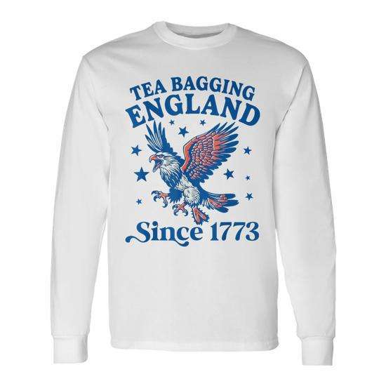 Tea Bagging England Since 1773 Patriotic Eagle T-shirt a maniche lunghe girocollo unisex per adulti promozionale