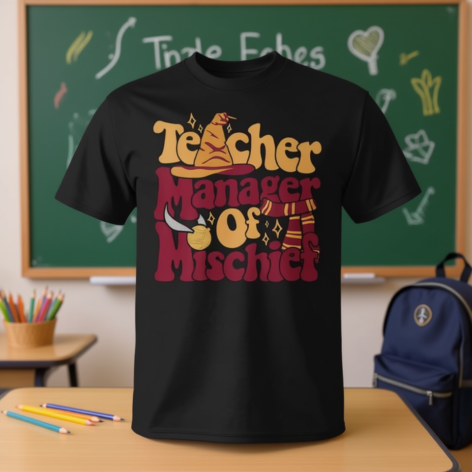 Maglietta Teacher Manager Of Mischief, unisex, per adulti, a maniche corte, girocollo, con stampa digitale, per il ritorno a scuola, per la laurea