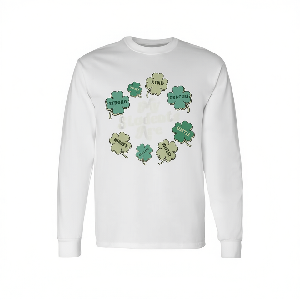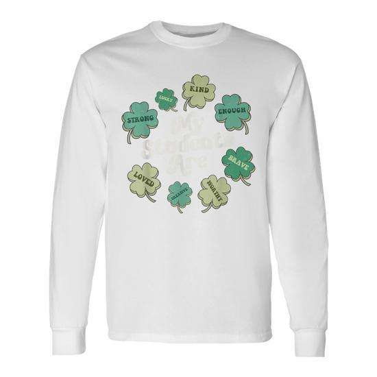 T-shirt a maniche lunghe con affermazioni positive per insegnanti per il giorno di San Patrizio
